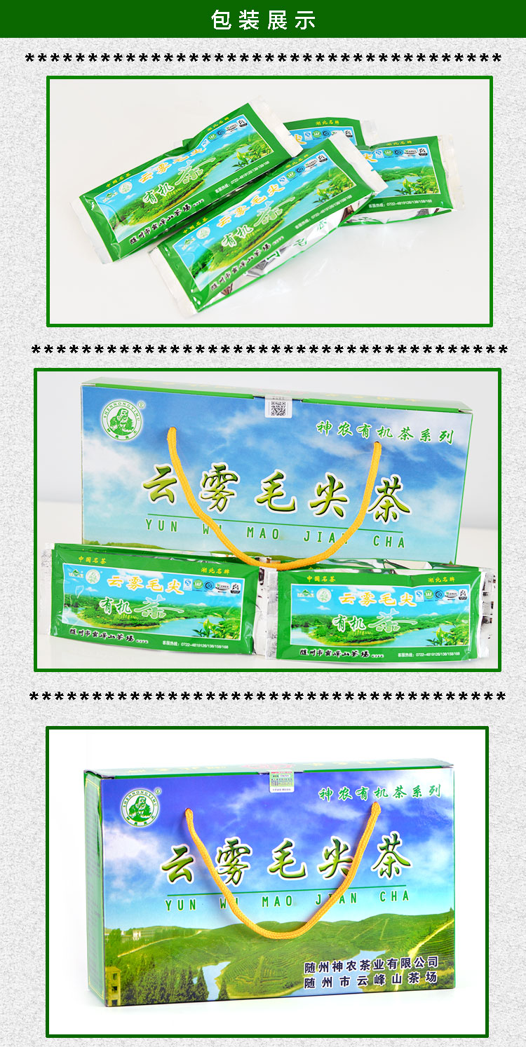 云霧毛尖茶外形緊結(jié)稍卷曲,茶毫顯露,湯色嫩綠明毫,香氣醇厚持久,滋味綿長(zhǎng)回甘,葉底嫩綠明亮。自七十年代創(chuàng)制以來(lái),已有近四十年歷史,深得消費(fèi)者好評(píng),先后多次被評(píng)為“中國(guó)名茶”、“湖北省優(yōu)質(zhì)產(chǎn)品”,李先念主席曾于1988年將其作為國(guó)粹饋贈(zèng)給保加利亞客人。